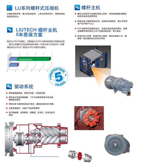 LU(250kW-560kW)系列螺桿式空壓機(jī),依托集團(tuán)公司先進(jìn)的歐洲技術(shù),考慮大型機(jī)組的適用范圍、運(yùn)行經(jīng)濟(jì)性、可靠性及操作維護(hù)的方便性而精心設(shè)計(jì)和組裝的。配置久經(jīng)考驗(yàn)的進(jìn)口運(yùn)動(dòng)部件,整機(jī)運(yùn)轉(zhuǎn)穩(wěn)定、可靠。同時(shí),針對(duì)中國(guó)環(huán)境工況專(zhuān)門(mén)改進(jìn)適應(yīng)性強(qiáng),特別適合于氣量大的集中供氣場(chǎng)所。