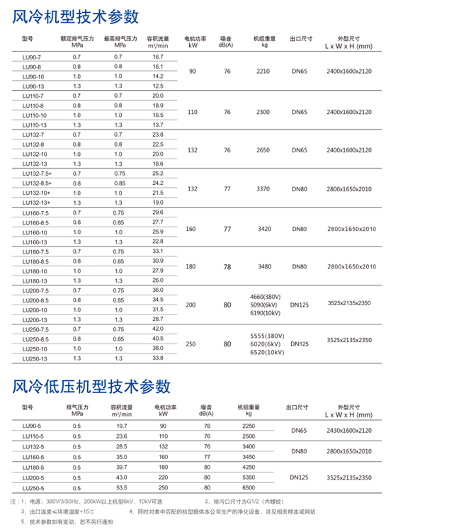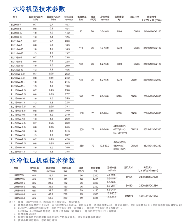 ·LU90-250kW系列螺桿式壓縮機主機具有最佳的螺桿線速度及很高的壓縮效率,比市場上同類產(chǎn)品節(jié)能5%以上。